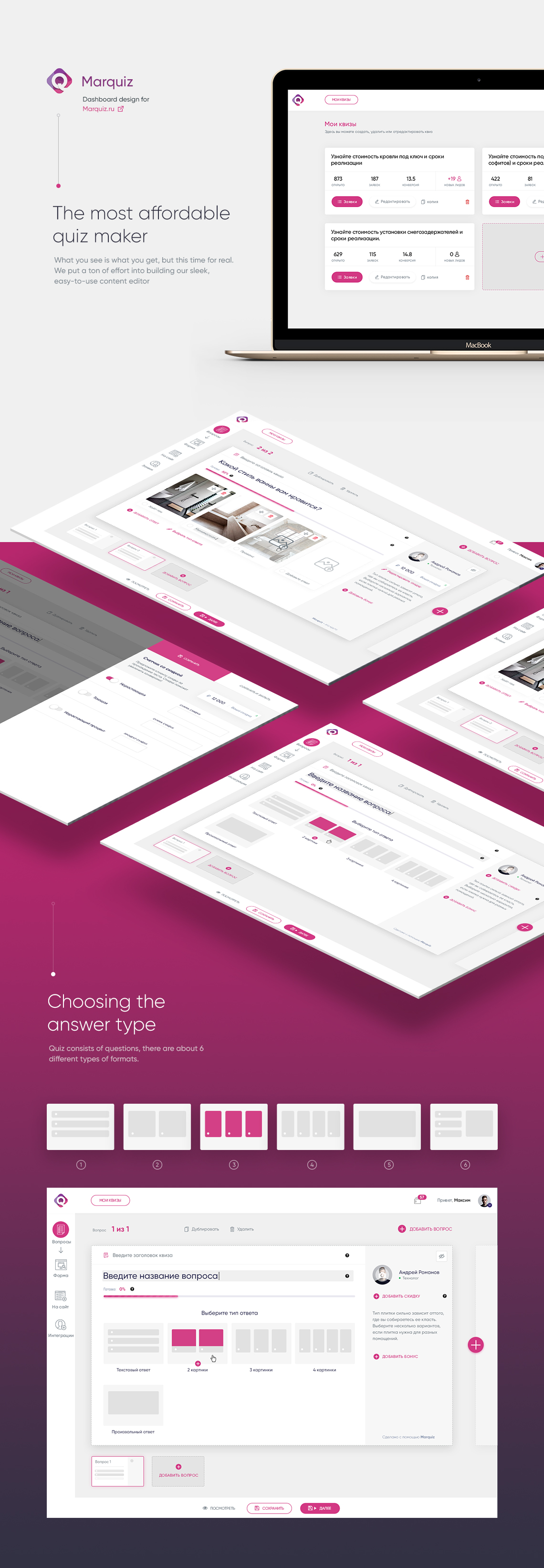 Dashboard design for personal project Marquiz - the online quiz maker.