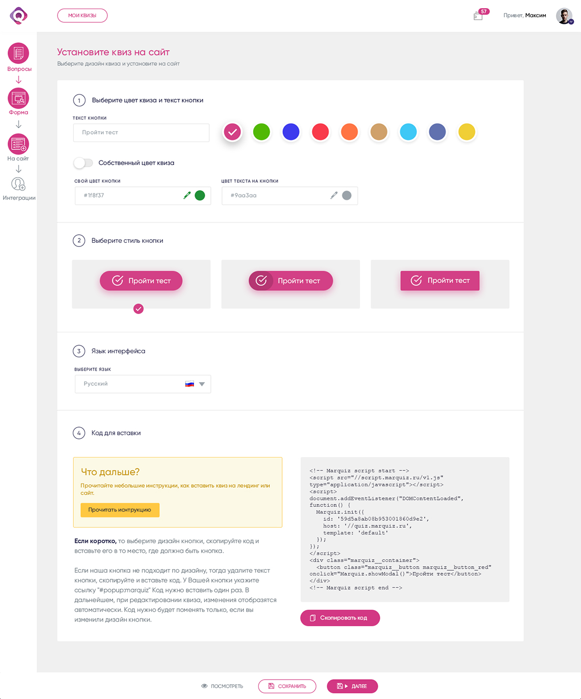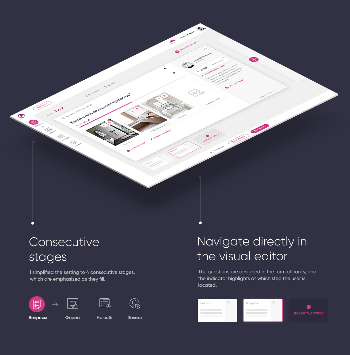 My task was to make the tool more attractive due to simplicity. As the basis, I took the quiz interface, and built around it the visual editor. Thus, the client immediately sees the final result.