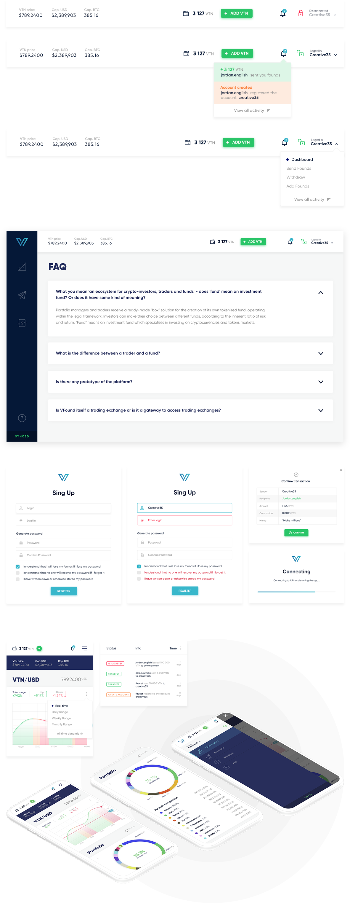 The task was to develop a control panel for VFound that provides an opportunity for investors looking for the simplest way to get into the decentralised economy. It should be both simple and detailed to give the user the possibility to buy and monitor investment growth.